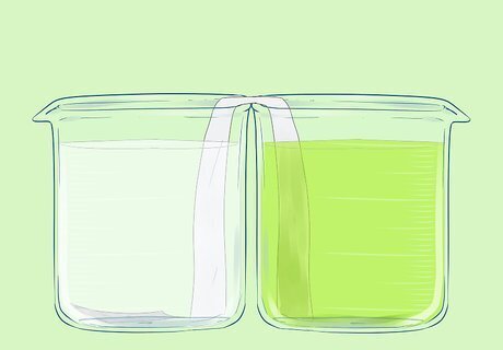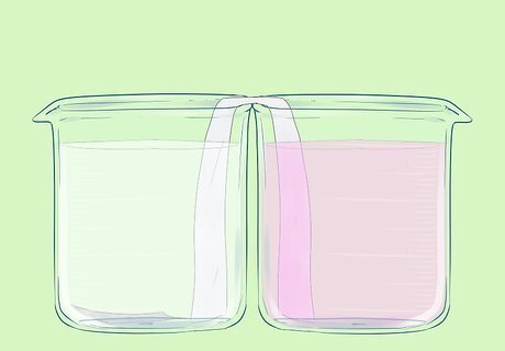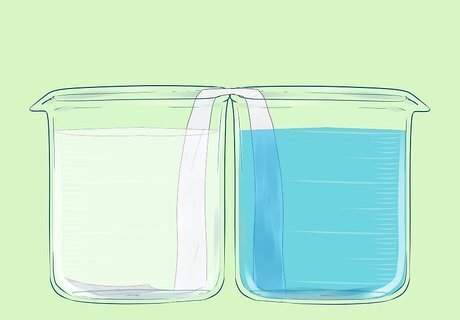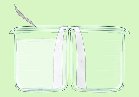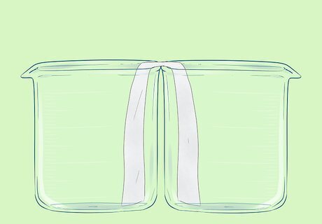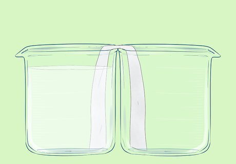 Place the two beakers next to each other. Bend the filter paper so that it touches the bottom of both beakers.