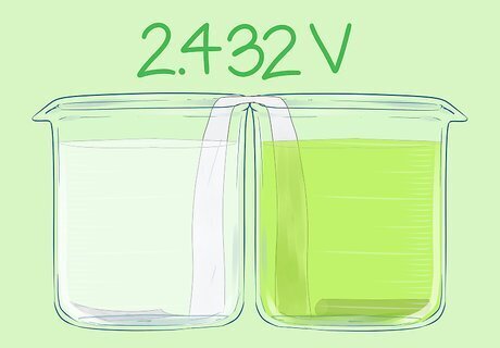 Place the graphite rod into the beaker. It should not touch the salt bridge. This is the positive electrode. This cell has a voltage of 2.432V.