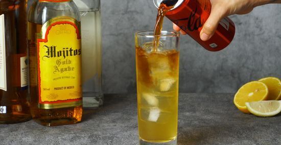 Top off the cocktail with a splash of cola. Use Mexican Coke made with real sugar or American Coke, based on your personal preference. You can use the standard 2 fl oz (59 mL) of Coke or fill the glass up all the way.
