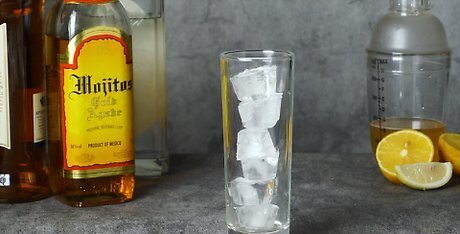 Add ice to a cocktail shaker if available. If you don't have a cocktail shaker, you can improvise one by adding ice to a mason jar and using this to shake the drink. Otherwise, you can simply mix the drink with a long spoon in the serving glass.