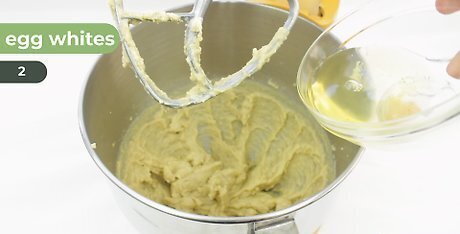 Create a 1:1 ratio of egg whites to egg yolks. In some cases, recipes that use solely egg whites can turn out dry. If you don't mind ruining your cake's color, add some yolks into the mix to promote moisture—replacing half the egg whites is a good rule of thumb. For example, if your recipe asks for 4 egg whites, use 2 egg yolks and 2 egg whites. Remember that this won't work for certain recipes, such as those that ask you to whip up your egg whites and fold them into a batter.