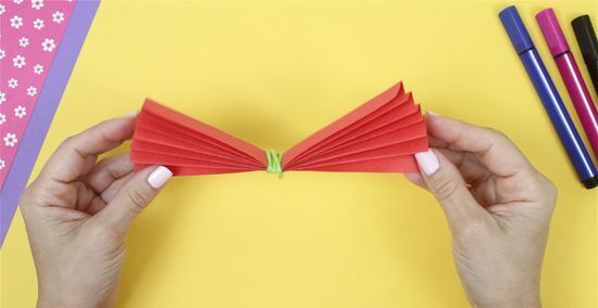 Fold the paper like a fan, keeping the folds ⁄2 inch (1.3 cm) apart. Turn your paper so that the back is facing you. Fold the bottom edge up by ⁄2 inch (1.3 cm). Turn the paper over, and fold it by another ⁄2 inch (1.3 cm). Keep flipping and folding the paper until you reach the other end. Finish folding the paper in the back. This will make the bow symmetrical. If you finished folding in the front, cut the paper shorter until the last fold is in the back. The back of the paper is the blank or white side. If you are using construction paper, there is no blank or white side.