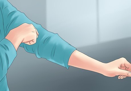 Pull your sleeves up for added effect. After you've waved your arms around a bit, pull up both your sleeves to be even more convincing. To make sure the pen comes with your sleeve, pinch it as you push it up. It will be resting at the bottom of your sleeve due to gravity and won't be noticed by your audience underneath your arm. If you'd like, once you get really good at this trick, tug at your sleeves a bit even before the trick. Don't move them too much, though – just enough to give the illusion that you've moved them up a bit. If you move them too far, you can wiggle around a bit to lower them before you vanish the pen.