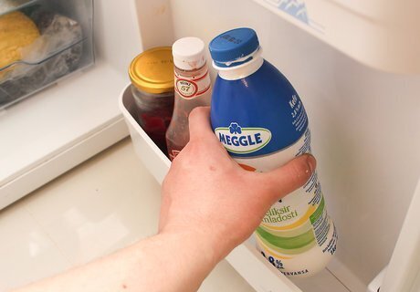 Chill the liquids. To make each smoothie layer, you will also need yogurt and orange juice, or another liquid for blending. Keep these ingredients cold and in the fridge until you're ready to assemble your smoothie. You can use Greek, regular, coconut, or soy yogurt for the smoothies. Each smoothie color will require ¼ cup (61 g) of yogurt. Good blending liquids for the smoothies include coconut milk, water, and dairy or non-dairy milk. Each smoothie color will require about 2 tablespoons (30 ml) of liquid.
