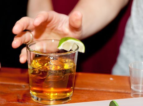Garnish with citrus to complement the taste of the energy drink, then serve. N.B (Proper garnish to compliment the flavour of the original 'Red Bull' would be orange)