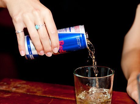 Now add the Red Bull, pouring carefully so as not to splash any over the edge.