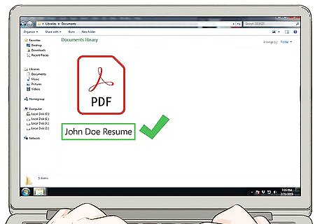 Save your resume as a PDF file. If you're sending your resume to potential employers online, they most commonly want a PDF. Use that file format unless the job listing specifically requests something else. A PDF document benefits you as well because it preserves your formatting choices. It also prevents errors from being accidentally introduced if the hiring manager opens your resume or prints it out.