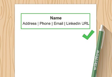 Create a header with your name and contact information. At the top of your page, type your full name, address, phone number, and email address. Play around with the formatting to find something that you like best. For example, you could have all the information centered. You could also have your address on the left side and your phone number and email address on the right, with your name centered in the middle in a slightly larger size. If you don't already have a professional email address, get one from a free email service such as Gmail. Ideally, the email address you use on your resume will be some version of your initials and last name. Never list a silly or suggestive personal email address on your resume.