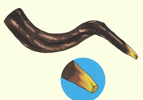 You only need to remove the very end of the horn. Measure 1 inch (2.54 cm) past the end of the hollow area, and mark that point on the horn. Cut the tip of the thoroughly-dried shofar horn off at the mark.