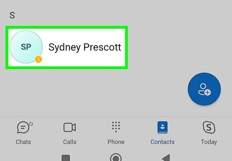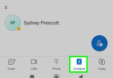Tap the Contacts tab. It’s at the bottom of the screen in the Skype app.
