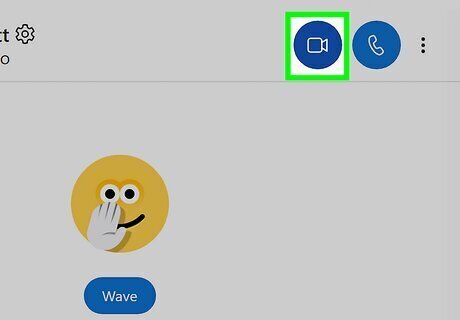 Tap the Android 7 Videocamera Video Call icon. You’ll see this at the top of the page after you select a contact. Allow access to your mobile device’s microphone and camera if prompted. Once you tap the call button and give any requested permissions, the call will ring a few times until the person picks up or the call times out. The call will hang up almost immediately if they aren’t online.