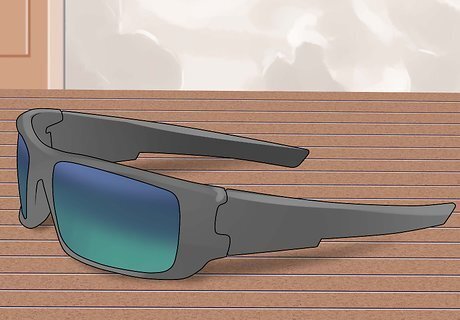 Wear eye coverings from at home or from a shop. You can use sunglasses, goggles, or a visor for this part of the SWAT costume. See the later step for goggles and visor ideas if you prefer them instead. Get black frame-style sunglasses at home or from a shop rather than making them on your own. Avoid prescription or designer brands.