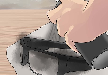 Paint the sunglasses. If they’re not totally black you can paint or marker over the non-black areas with spray paint or black markers. Take care to avoid getting paint or marker on the lenses or you risk making them unusable. Try cover them with masking tape while you do the painting on the non-black surfaces.