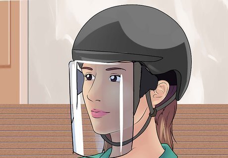 Set up goggles or a visor. Goggles and visors (such as those a welder or mechanic might use) might be available in your home or garage. If you don’t own goggles or a visor then you may be able to borrow them from someone handy with tools. You can ask something such as, “I’d like to borrow your welding visor for a Halloween costume, but I will return it the next day.” Make sure you return any borrowed equipment in the same condition you received it. Goggles and visors are also relatively inexpensive in local shops or online. Don’t paint these over especially if you intend to wear them at any point.
