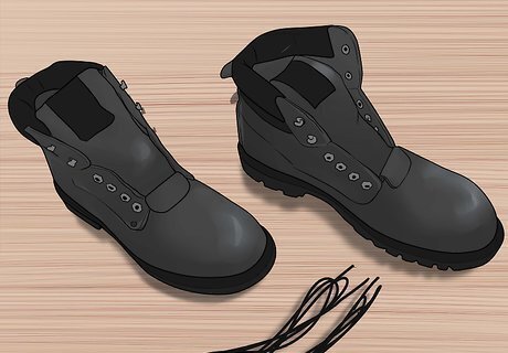 Put on matching shoes. These should be black and handle long periods of use. You can opt for combat-style boots instead of shoes, but these can be more costly and less comfortable. Standard black sneakers are a more inexpensive way to handle this part of the costume comfortably. #* Make sure whatever choice you make is entirely black with no logos on them. You can use black tape over logos temporarily if necessary.