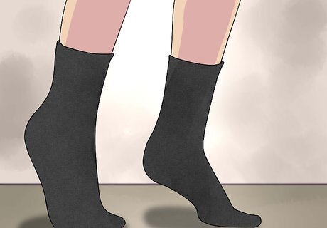 Wear a pair of black cotton dress socks. This will help to keep the color scheme going and stay comfortable. You want socks that are well-cushioned for a lot of walking, but not so thick that your feet sweat excessively. Make sure the socks ride high enough to tuck into the legs of your pants.