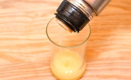 Pour the pineapple juice, vodka, coconut cream, and light rum in the mixing glass.