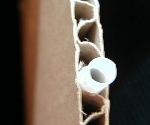 Ps7100007_853.jpg Pierce a straw into a corrugation hole, as pictured here. Make sure it goes all the way through, as close to the center of the circle as you can get it. If the corrugation holes are small, you may need to use a thinner stirring straw, which can be found at most coffee shops.