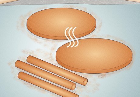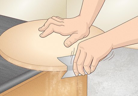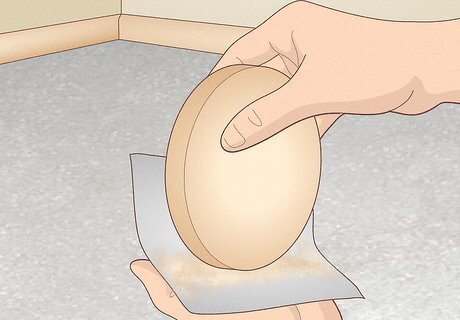 Smooth away any splinters or imperfections with coarse sandpaper. Take a coarse, 40- or 60-grit piece of sandpaper and work around the curved edges of each base piece. If you notice any rough or uneven edges, focus on those areas first. Continue sanding around both wooden circles until they’re both free of splinters and rough spots. If you don’t need to do any extensive sanding to your wooden pieces, try using a smoother, higher-grit sandpaper instead.