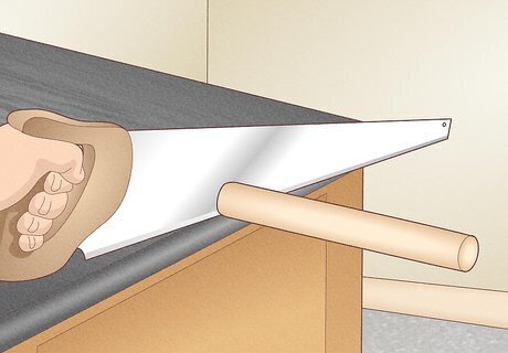 Saw 3 dowels to provide structure for your stool. Use a tape measure to calculate the approximate height of your plastic hourglass. Keeping this measurement in mind, trim the height of your 3 dowels to match your bottle hourglass. Since the dowels aren’t especially thick, you can use a handsaw for this part of the process. Use 1 hand or a table clamp to hold the dowels in place while using your opposite hand to maneuver the handsaw.