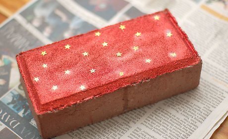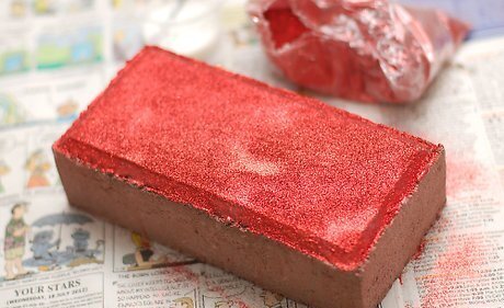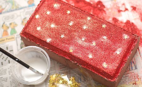 Paint decoupage glue over the brick surface (except for the part that will not be seen). Sprinkle the glitter over the glue. Allow this layer to dry before adding any additional layers of glitter.