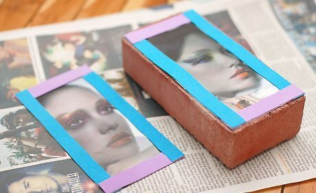 Add the images to the base layer. Using decoupage glue, glue the images all over the covered brick in a pattern or randomly, as wished. Follow the glue instructions for drying times.