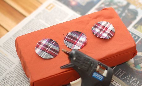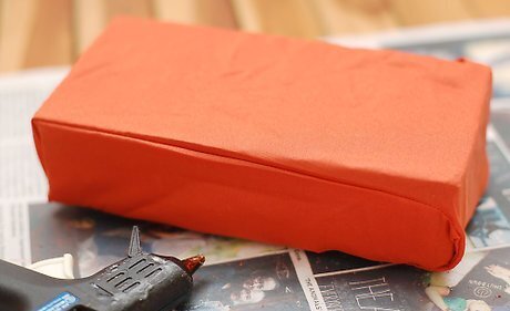Wrap each brick as though you are wrapping a gift. Instead of using tape to keep your work together, use a dab or two of liquid nails or silicone cement. You could also use a hot glue gun if you're gluing fabric to fabric. In each case, don't overlap the folded parts too much, to ensure that the brick still sits evenly. You may want to sew the edges of a cut portion of fabric so they don't fray or tear as time passes.