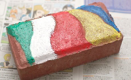 Clean each brick in readiness for painting. The bricks should be as clean as possible to allow the paint to adhere well.