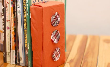 Select the fabric. As with the paper choice, be sure to use fabric that is suitable year-round and matches the décor. Of course, if you're happy to change the brick bookends regularly, you could also theme them to a season, such as using Christmas colors for the holiday season, then recovering the bookends post-Christmas. Stronger fabric is advisable, to prevent the likelihood of any rips or wrinkling. Fabric suggestions include: Fabric direct from your fabric stash, scraps or other pieces Scarves, old clothing that has been loved but is no longer wearable––a cozy look can be achieved by cutting up and old fluffy sweater Sarongs or other clothing wraps Old sheets––put those childhood Spiderman sheets to good use and wrap the bricks in a section that features Spidey.