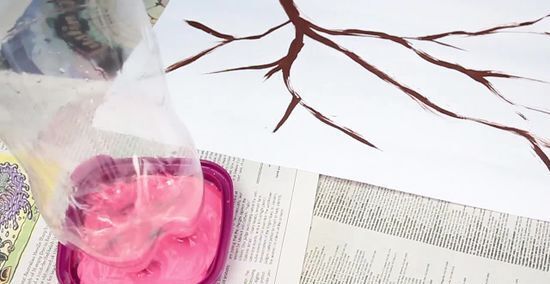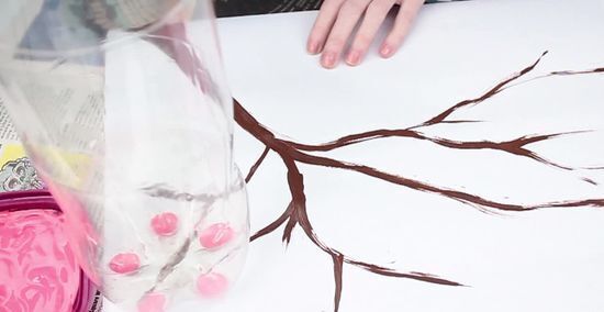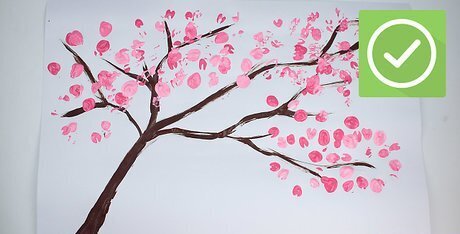 Choose paint. Tempera paint works well with this project because of its consistency and the non-toxic aspect. Choose several colors to design multi-colored cherry blossoms or stick with the traditional pale pink. Pick up a bottle of black and/or brown paint and a paint brush to create the cherry blossom tree branches and trunk.