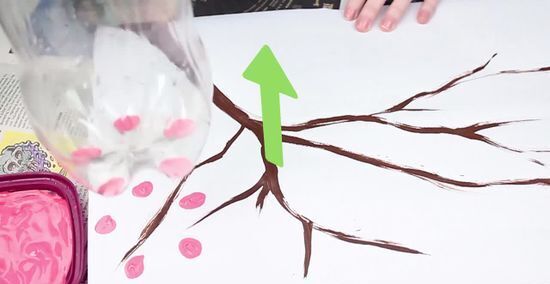 Prepare workstations. Cover a flat surface with newspaper and then pour approximately two to three cups of paint onto a paper plate. Place one sheet of heavy artist paper per workstation. Consider pre-creating the tree branches and trunk if you are working with small children.