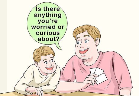 Discuss their feelings while doing a low-stress activity together. Your child might get stressed and withdraw if you ask them about their feelings directly. Instead of putting them on the spot, go on a walk or bike ride together, play with toys, or play cards or a board game. They're more likely to bring up their emotions in a comfortable, low-pressure setting. Try checking in with them by saying, “How have you been since we last talked about the divorce? Is there anything you're worried or curious about?” If they don't feel like talking, change the subject and try again another time. It's normal for children to resist talking about a traumatic event for several weeks. It's best to respect their wishes unless you notice significant changes in their behavior.