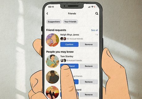 Look at the “People You May Know” feature. Once you begin to add individuals you know from social groups like school work, or recreational gatherings, Facebook will start to post profiles of people you may know through your existing friends. Facebook will also show you how many mutual friends in common you have with this potential friend so you can trace how you know this person and are assured it is not a complete stranger.