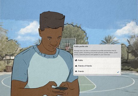 Decide if you want to keep your profile public or private. While it may be tempting to share all your personal preferences, likes, and dislikes to attract new friends, keep in mind this information could also become public information for potential employers, ex spouses, and family members. Customize your Facebook privacy settings so you can make sure your weekend warrior photos only appear on your friends' newsfeed, and be aware of exactly how much information you are giving out to others. Take advantage of the 4 basic privacy settings on Facebook and apply them to your profile, posts, tags, etc.: Everyone: Grants access to anyone on the Internet. Friends: Grants access to only your friends on Facebook. Friends of Friends: Grants access to your friends on Facebook, as well as their friends. Custom: Grants access to a select audience of your choice, including specific people and networks. Use the audience selector tool option, which allows you to decide how public or how private you want a certain status you just posted or a photo of you added by a friend or by you, to be. You can also set privacy settings for future posts or tags by you and of you by others. Doing this will ensure you know exactly what you are sharing with your friends and what will remain private. This way, you can keep your profile friendly, and still have control over how much you want your new friends to know about you.