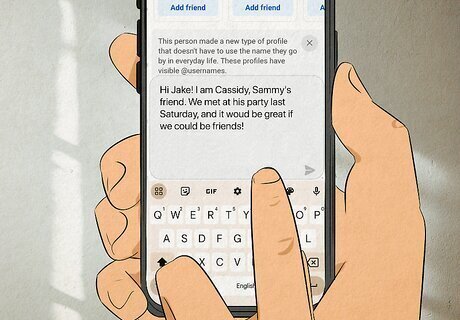 Add a personal note to a friend request. It’s always a good idea to identify your relationship with the person or introduce yourself, as they will more likely accept your request if they can place you among the people they know or are reminded how they know you. For example, if you’re sending a friend request to someone in the same online West African Music Appreciation group as you, add a friendly note to the request clarifying how you know each other and that you thought it would be great if you could be friends. As well, if you are friending a friend of a friend, add a note about your mutual friend in common.