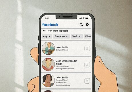 Use the search tool to look for people you may know from your other social groups. Look up the names of friends from school, work, or your weekly reading group to see if they are on Facebook and send them a friend request. Start with individuals you know directly via your other social groups, as well as relatives or family friends that may be on Facebook.