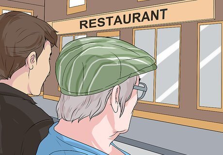 Take them to places they know, if possible. If you want to take the Alzheimer’s patient out to dinner focus on taking them to restaurants they are very familiar with. By taking them to places they’re familiar with, you’ll put them at ease and make the dining experience much more enjoyable for everyone. If the person has a favorite restaurant they’ve frequented since they were a child, go there. They’ll have good memories associated with it. Remember, though, they may get confused and think they’re visiting the restaurant with different people and at a different point in their life. Avoid fast-paced restaurants that are very busy. This will likely upset the Alzheimer’s patient and make meal time uncomfortable. Let restaurant staff know that the person has Alzheimer's. Some middle or late stage patients should not be taken out. In fact, late stage patients may be bed bound or confined to a care center or hospital.