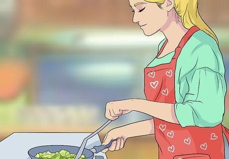 Cook the food yourself. You'll have to prepare food for people in almost all stages of the disease. This is because they'll largely be unable to navigate the complexities of organizing and cooking a meal. In addition, there are cooking-related dangers that pose risks to Alzheimer's patients. If the person is in the earliest stages of the disease and lives on their own, prepare the food and deliver it to them with everything they’ll need to eat. Label a full meal such as pre-cut fish, mashed potatoes, and peas. If possible, deliver the food to the person while it is still warm so they don’t need to worry about heating it. People in the middle or later stages of the disease should not prepare food for themselves.