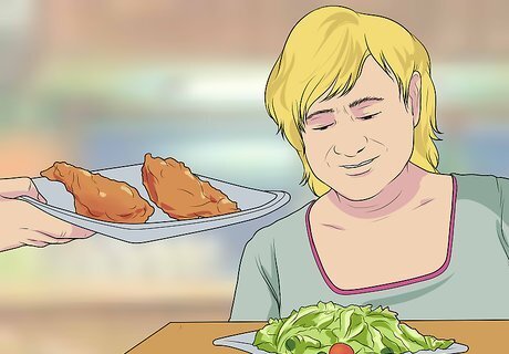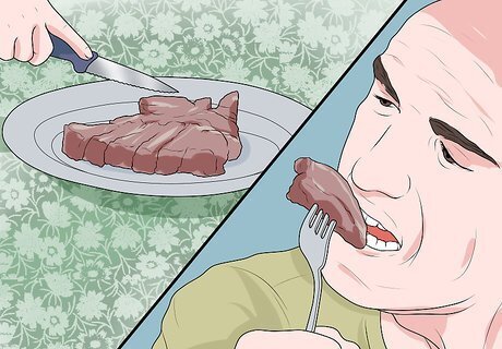 Provide physical help during meal time. Depending on the stage of their disease, you'll have to physically help the person eat. Ultimately, meals will become a team effort. You'll have to provide middle stage patients with some physical help. For instance, you may need to grab silverware for them, help them cut or lift food, and serve them. Late stage patients will need substantial physical help. This will likely include you holding a spoon and feeding them one bite at a time. Some late stage patients may not be able to eat solids at all, and will rely heavily on feeding tubes.