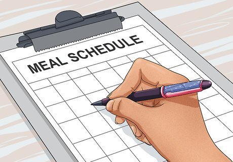 Create a meal schedule. By establishing a meal schedule, you'll create order and stability for you and the patient. A meal schedule will ground you and give the patient a sense of predictability and routine. Serve meals at the same time every day. Build in enough time so the person has plenty of time to eat. For instance, instead of reserving half an hour, reserve an hour for meal time. Plan meals ahead of time. Early stage patients might take comfort in knowing what they will eat in the future. Post the meal plan and schedule somewhere the patient can view it. Early and middle stage patients will appreciate this. Remember, though, make sure to put a clock next to the schedule.