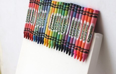 Grab your canvas. Prop it up against a wall or a chair lined with a towel. Some area that you're not concerned about getting messy. Choose a size of canvas that you think you can cover with the amount of crayons you have.
