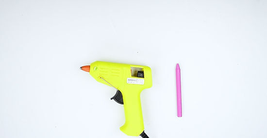 Place a crayon into the glue gun. Unwrap the crayons of your choice, shave them down to size (in order to fit), and place one into the glue gun. If you want to use multiple colors, once you've placed the first crayon into the glue gun, start pushing in the second, then third and so out - this will force crayon in front of it out .