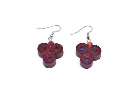 Attach earring hooks or studs. When you are satisfied with your quilling earring pieces, you can either attach them to earring hooks or studs. To finish hook style quilling earrings, insert the top part of the string through the hoop and tie it to secure the quilling pieces to the earring hook. To finish earrings on studs, glue the quilling piece to the earring stud and allow to dry for several hours or overnight.