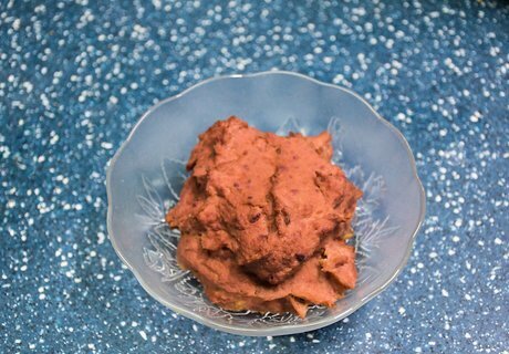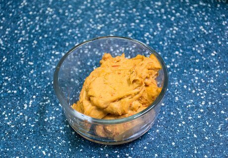 Divide the hummus into equal parts. Divide the hummus in proportion to the amount of vegetables you will be using. With this recipe, you will divide the hummus into nine separate portions, and each will be a different color when they have been blended with the vegetables.