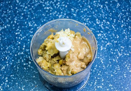 Process the pistachios and hummus. Use peeled and unsalted pistachios. Combine the pistachios and hummus. Process until smooth. The hummus will mostly stay beige, but with a light green tint.