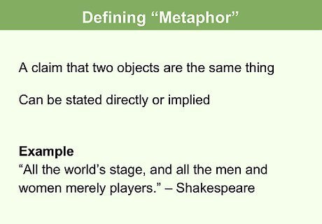 Use metaphors to help your reader visualize. Without being able to "see" what's going on in your poem, your reader is more likely to become confused rather than be moved by your poem. Using metaphors is a great way to assist readers with this, especially with more abstract or complicated ideas in your poem. Be sure to make the metaphors compare to places or items that most people have already seen or used. For example: "her eyes were a dreary winter day, full of hues of gray and overcast clouds turning sunlight into hazy glows".