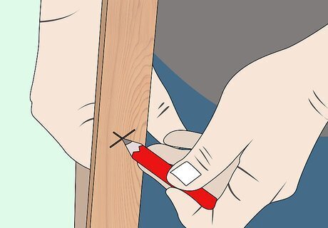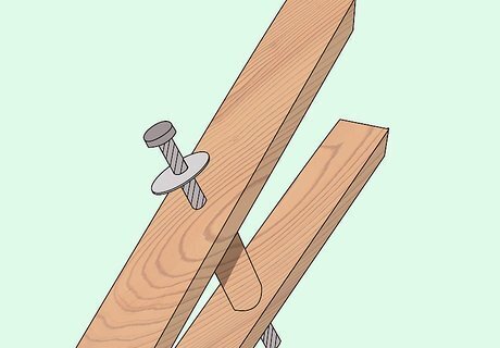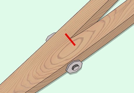 Drill a ⁄8 inch (1.0 cm) hole through the center 2 inches (5.1 cm) below the mark at the end of the rip cut in the previous step. Insert a ⁄8 inch (1.0 cm) hex bolt through this hole with a flat washer on the head of the bolt, place another washer on the threaded end, and then install the hex nut, tightening it snugly.