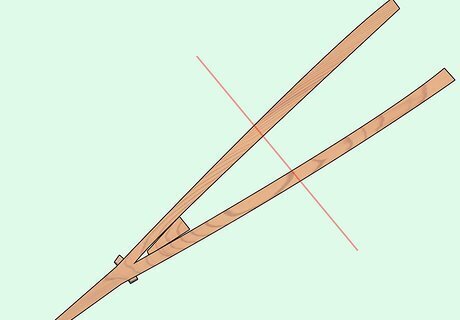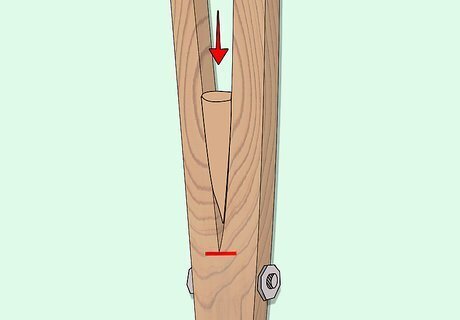 Cut a wedge ⁄4 inch (1.9 cm) wide to a point, 3 inches (7.6 cm) long, and drive it between the two limbs to spread them out. The sides should each bow out symmetrically and form a "Y" shape.
