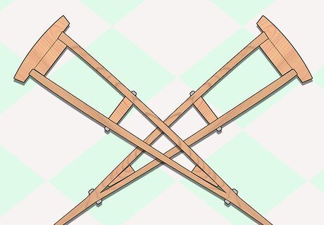 Cut two more blocks of wood 1 1/2 inches (5.1 cm) square and 7 inches (17.8 cm) long, then notch each end ⁄2 inch (1.3 cm) back from the ends and ⁄2 inch (1.3 cm) deep to create steps for the limbs to fit into. Glue and nail the ends of the limbs in these notches to form the tops of the crutches.