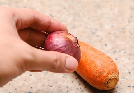 Buy vegetables. Next to chicken, vegetables are the main substance of your pot pie. Without a variety of vegetables, your pot pie may lack flavor and be boring. Thus, make sure to add at least a few key vegetables. Consider: Onion (1 small) Carrots (2 medium). Squash (1 or 2 small). Celery (2 or 3 stalks). Green peppers (1 medium).